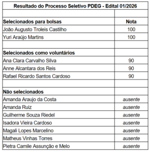 Resultado do Processo Seletivo PDEG – Edital 01/2026